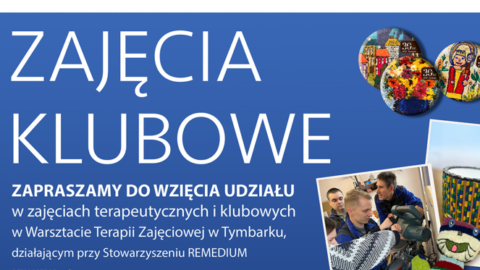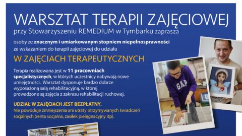 Zapraszamy do wzięcia udziału w zajęciach terapeutycznych i klubowych w Warsztacie Terapii Zajęciowej, działającym przy Stowarzyszeniu REMEDIUM w Tymbarku